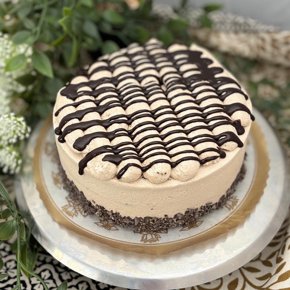 valmistettu suklaamousse joka on maustettu leipomomme canash suklaalla.